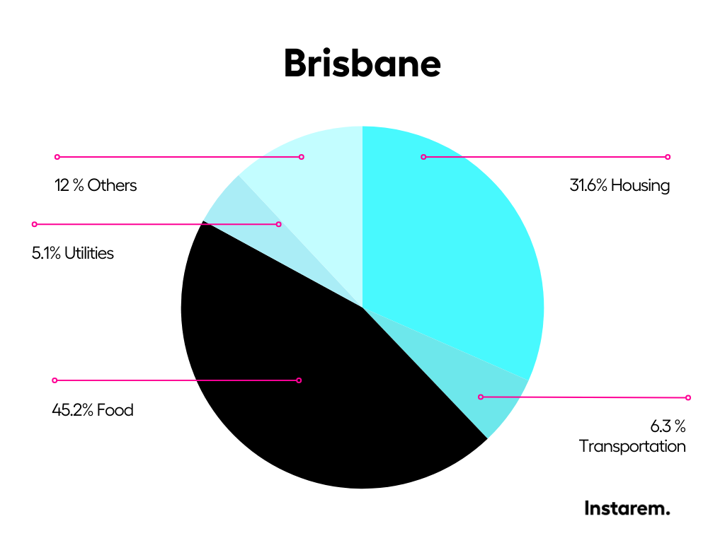 - Brisbane living expenses for a family of 4 = ~AUD 7227 monthly and ~ 86,724 AUD annually.