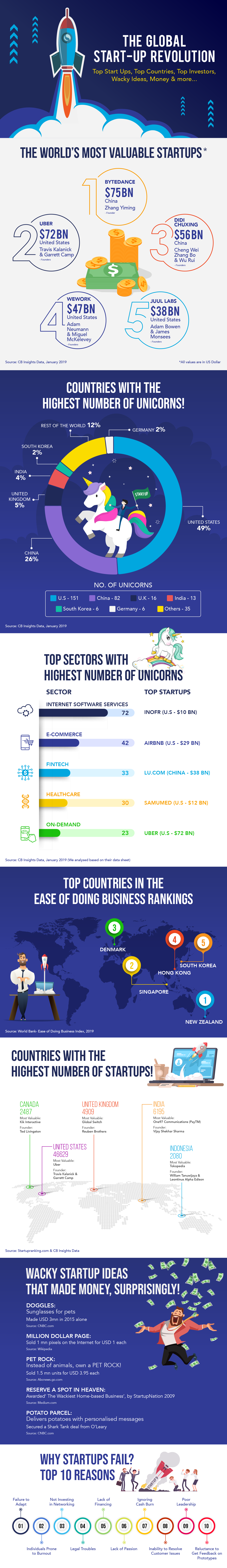 So let us find out the world’s most valued start-up, countries with the highest number of start-ups, wacky ideas that made millions and more